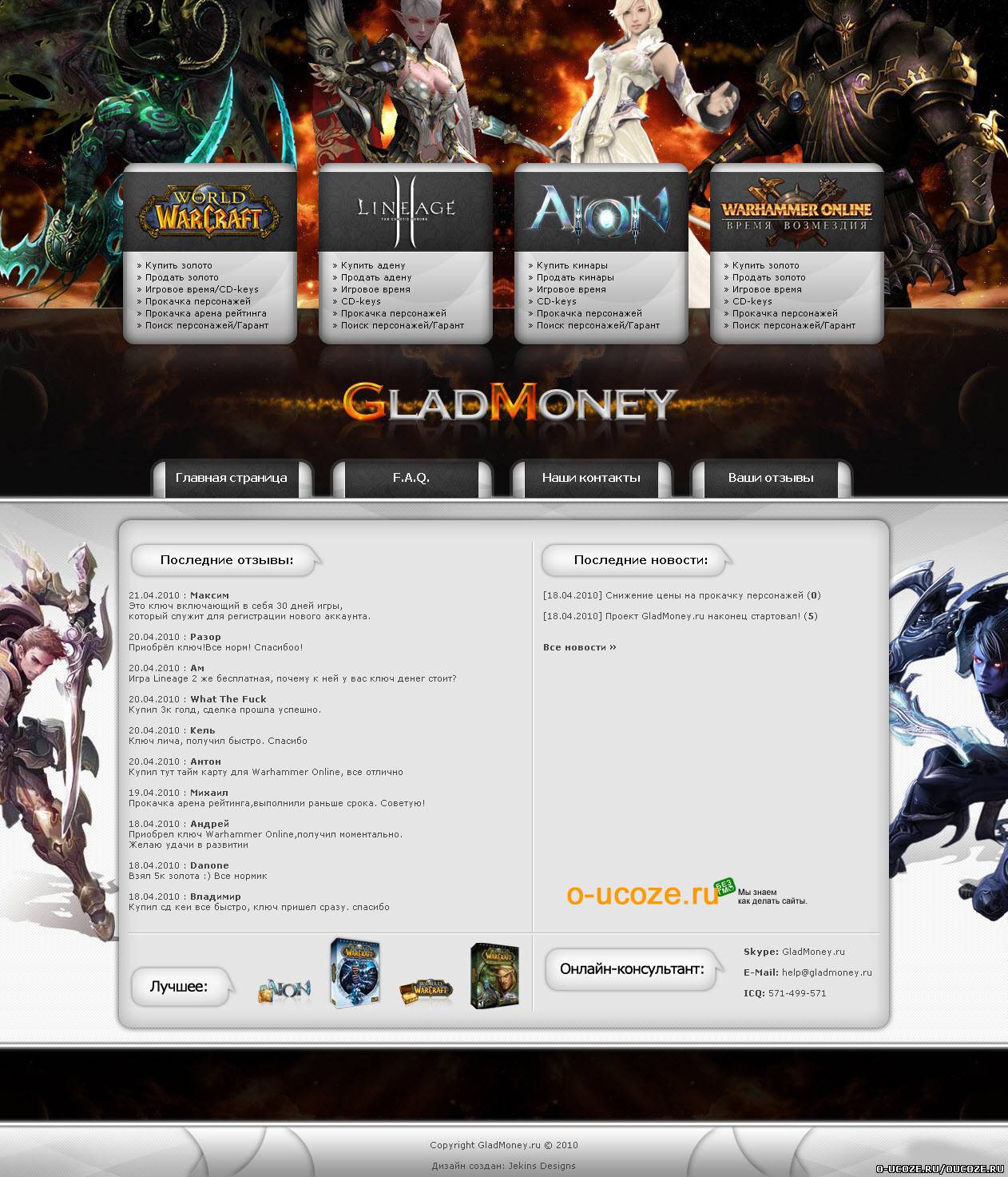 Светлый игровой шаблон Lineage 2 для ucoz