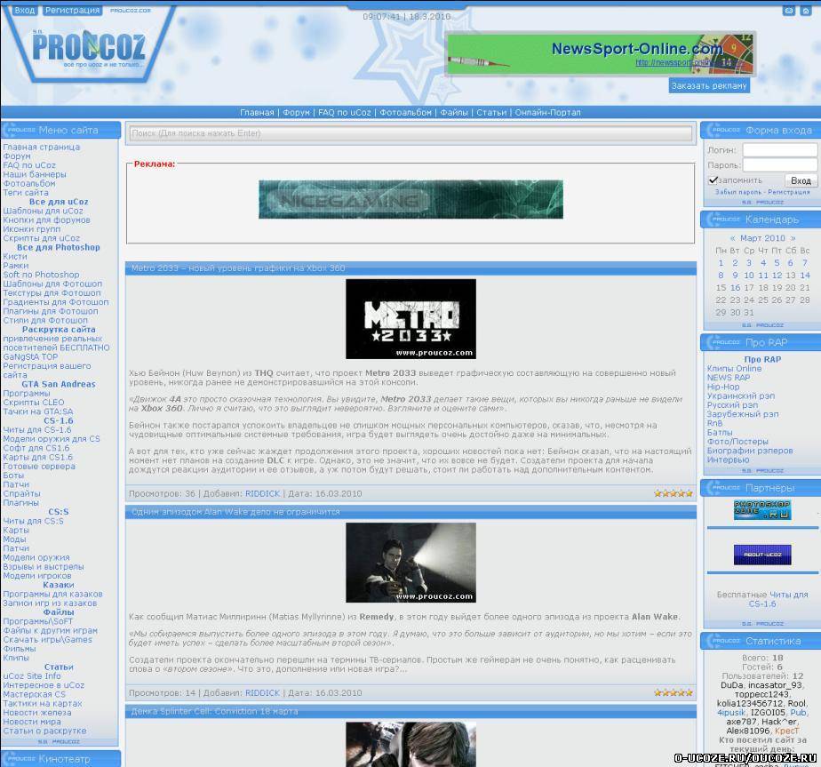 Скачать Рип шаблона сайта ProuCoz.com для ucoz + форум! бесплатно